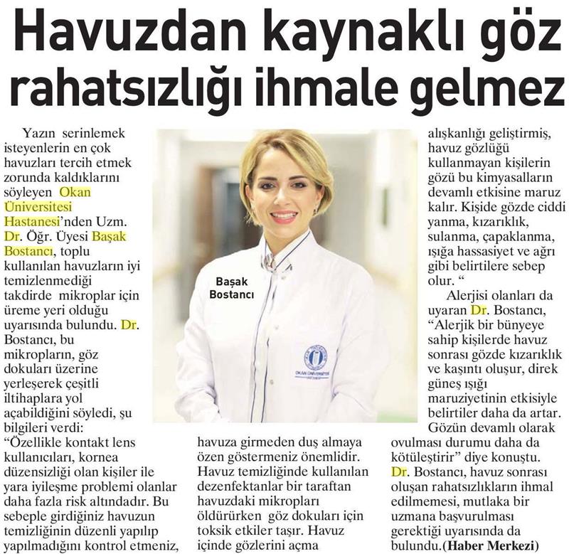28.07.2018 Ege Telgraf HAVUZDAN KAYNAKLI GÖZ RAHATSIZLIĞI İHMALE GELMEZ